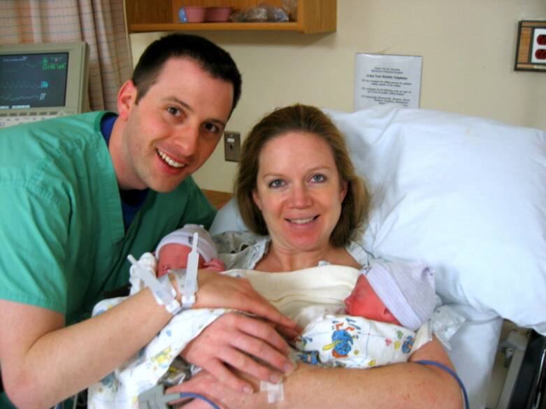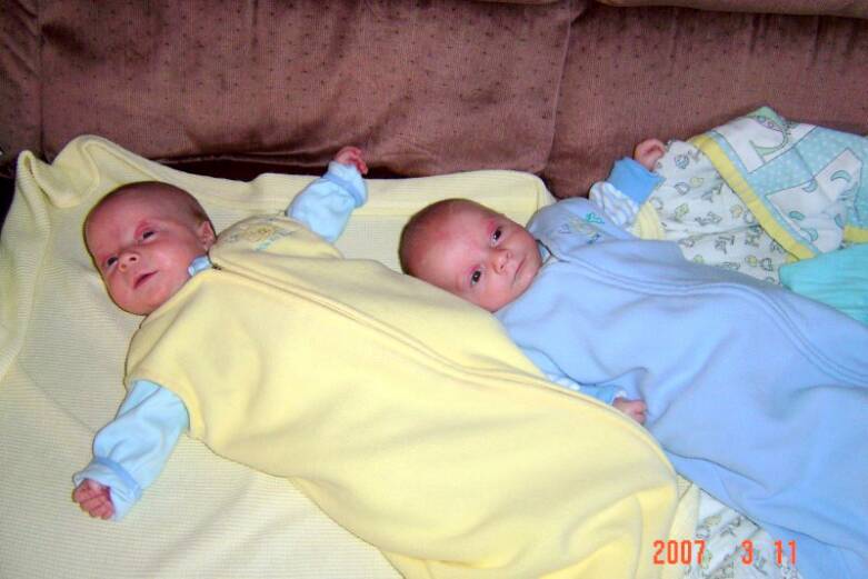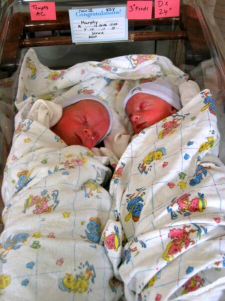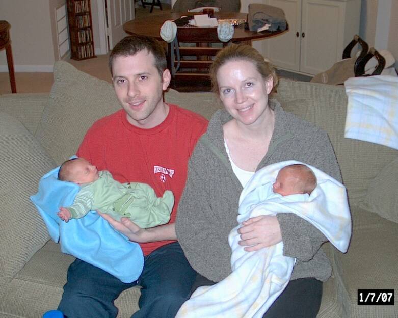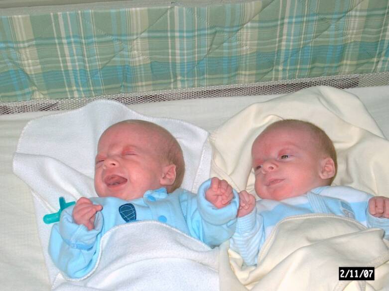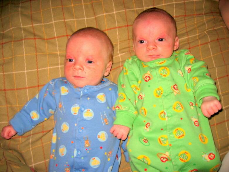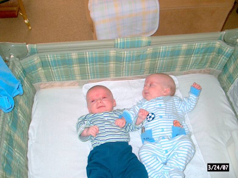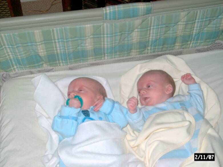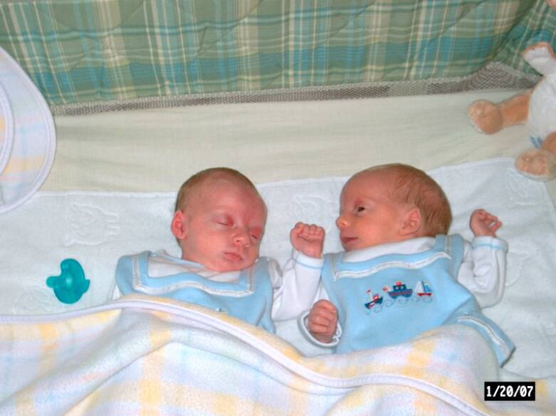 We arrived at 12:05pm on Saturday December 30, 2006. Christopher Edward (A - 5 lbs) & Daniel Richard (B - 4lbs 10oz).